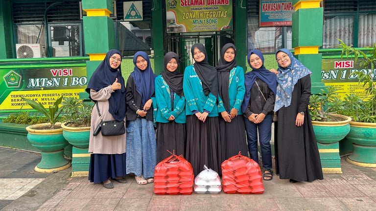 Humas MTsN 1 Bone – Semangat berbagi di bulan suci Ramadhan kembali ditunjukkan oleh siswa MTsN 1 Bone. Melalui kegiatan bertajuk SANTARA (Santunan Takjil Ramadhan), anggota English Club MTsN 1 Bone turun langsung berbagi takjil kepada masyarakat di depan madrasah pada Minggu, 15 Maret 2026.