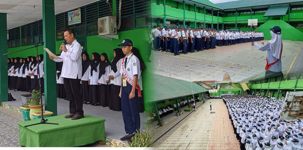Humas MTsN 1 Bone – MTsN 1 Bone kembali melaksanakan upacara bendera perdana pasca libur Hari Raya Idulfitri 1447 H pada Senin, 30 Maret 2026. Kegiatan yang berlangsung di halaman madrasah ini diikuti dengan penuh khidmat oleh seluruh warga madrasah.